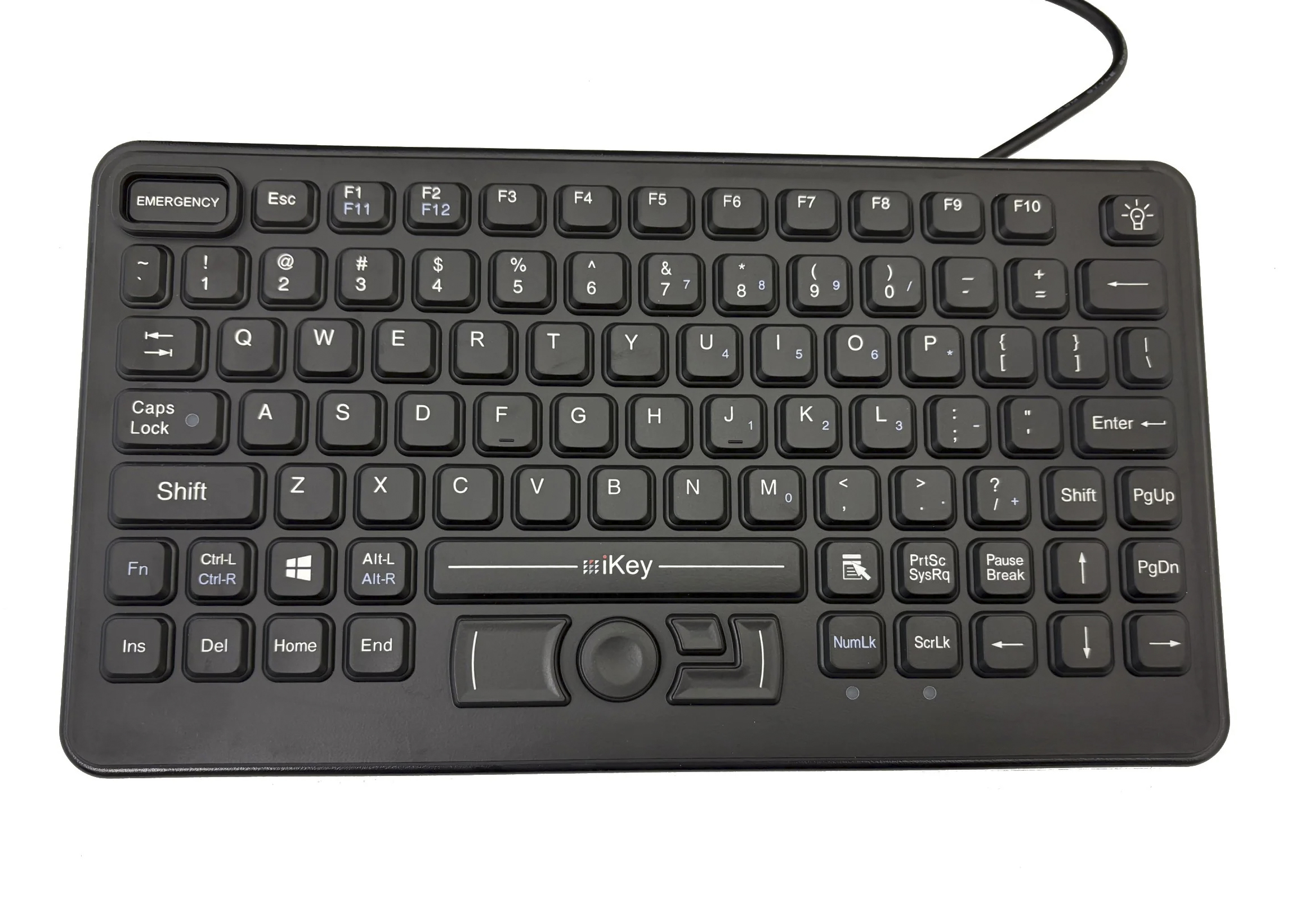 The SL-86-911-FSR by iKey offers a rugged keyboard and a rugged computer pointing device in one compact package. Ideal for public safety applications, it features a specially designed emergency key and red LED backlit keys. The SL-86-911-FSR integrates a Force Sensing Resistor, an upgraded pointing device that offers improved sensitivity and increased durability. Featuring a compact design with mounting holes, the SL-86-911-FSR fits securely in a vehicle’s console to serve effectively as a mobile application. It boasts a completely sealed and ruggedized construction that allows it to meet NEMA 4X specifications, ensuring that this keyboard is sealed against the elements or unwanted spills.