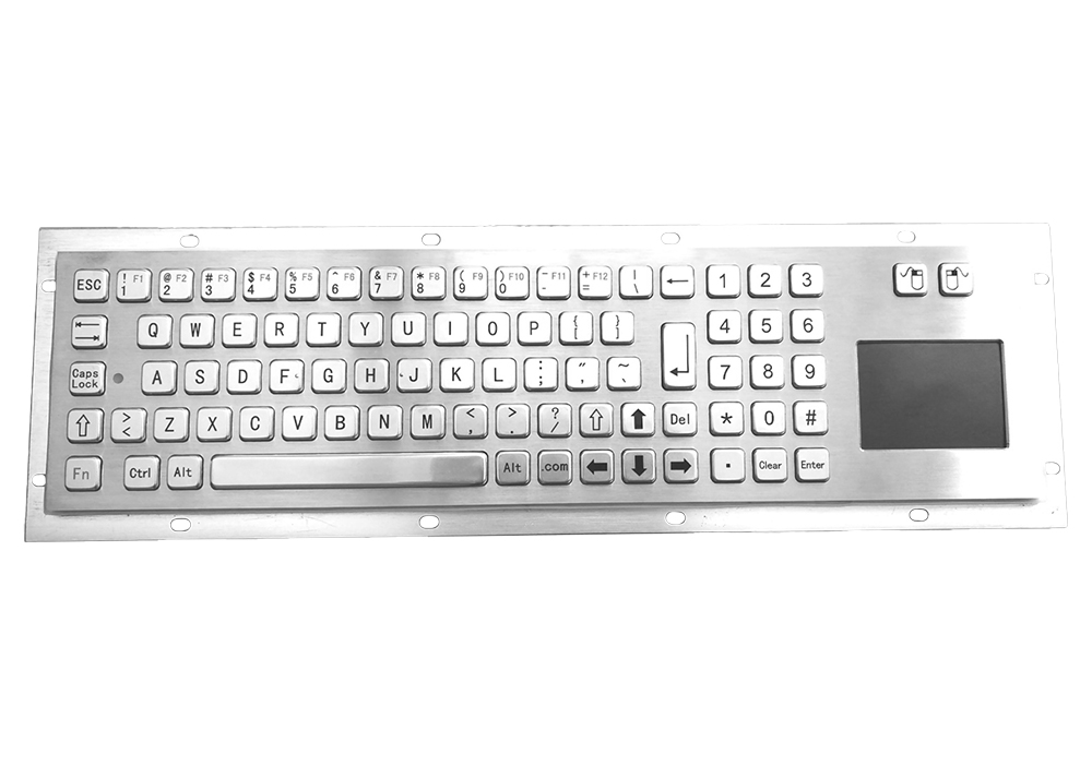 The KB015T is a rugged stainless steel industrial keyboard engineered for precision and durability in demanding environments. It features an integrated touchpad with left and right-click buttons and a full numeric keypad, combining efficient cursor control and data entry within a single, compact unit.